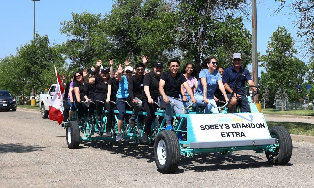 As soon as Sobeys franchise operator Ryan Hackett heard about the 30-foot-long Mega Bike coming to the city, he thought it would be great for “team building and a morale booster,” but it was a connection with the non-profit that “hit home.”