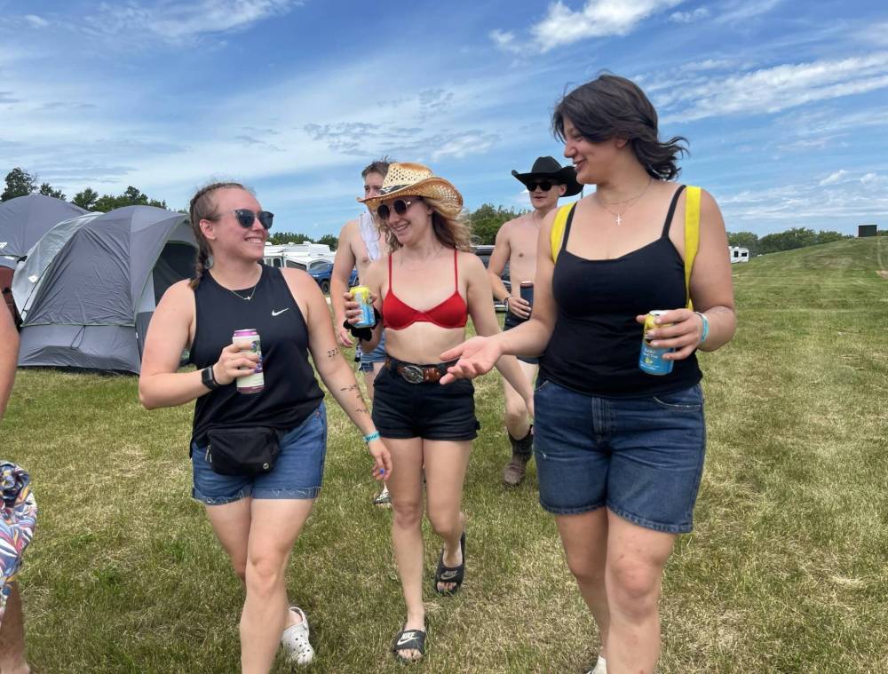 BOTTOM RIGHT: Mackenzie Lee (from left), Natasha Jones and Marie Biehn from Brandon share a laugh as they walk from the campground to the main stage on Friday. (Michele McDougall/The Brandon Sun)