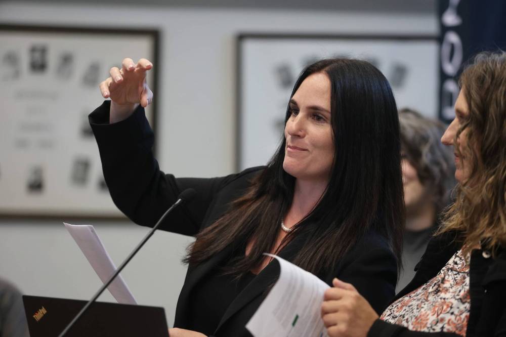 Brandon Downtown BIZ executive director Emmy Sanderson speaks at a city council meeting on Monday. (Alex Lambert/The Brandon Sun)