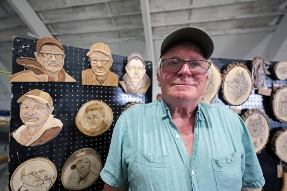 One portrait on display Tuesday was Fraser Moffat. Moffat was a resident of Strathclair who passed away recently, and his wife paid a visit to the woodworking booth to see the likeness.