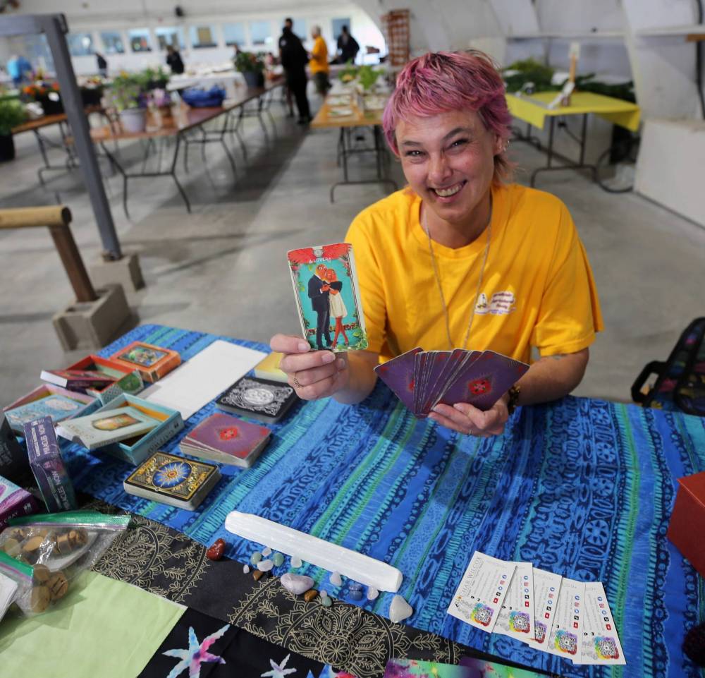 Another local showcasing her work was Char Wilcox, who is a tarot card reader. She provided the Sun with a demonstration reading that began with the draw of the tarot “devil” card. Wilcox explained that she encounters lots of skeptics in the area, but she said she aims for a therapeutic conversation that helps clients navigate change in their lives and heal.