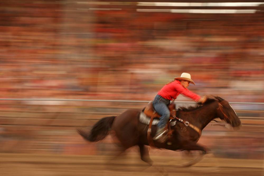 Jacey Boyes races back to the starting gates during the Ladies Barrel Racing event at the Manitoba Threshermen’s Reunion & Stampede in 2022. (Photos by Tim Smith/The Brandon Sun files)