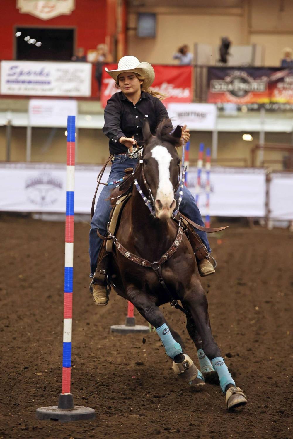 Sadie Brown of Virden competes in the pole-bending event on day one of the 2024 Virden Indoor High School Rodeo and Wild West Daze at Tundra Oil and Gas Place in Virden. This year’s event kicks off today. (Tim Smith/The Brandon Sun files)