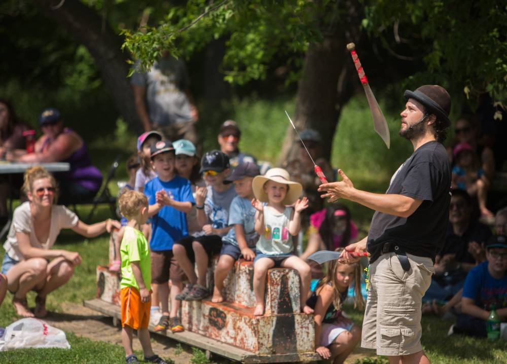 Eric the Juggler performs knife tricks for guests during the 2019 Minnedosa Fun Fest. This year’s Fun Fest starts on Friday. (The Brandon Sun files)