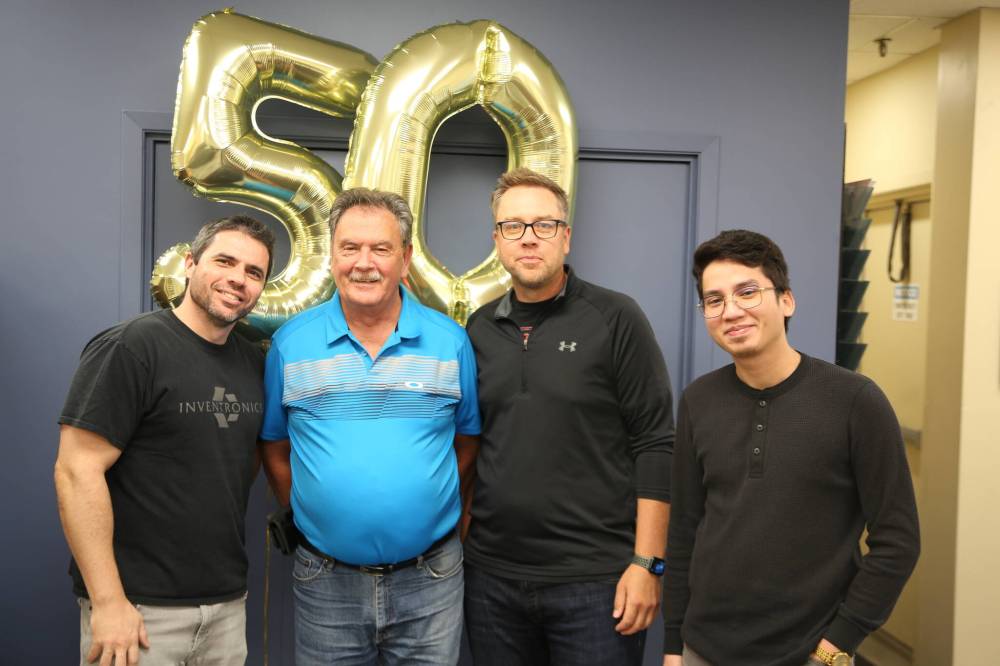 Inventronics marked a milestone on Friday as staff gathered to celebrate product designer Jack Stuart’s 50 years with the Brandon-based manufacturer.