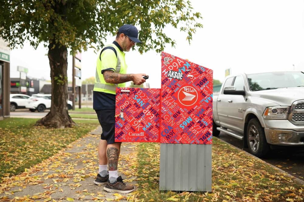 Letter carrier Tyler Stephens at a Canada Post mailbox in Brandon on Monday morning. CUPW has argued that the elimination of flyer delivery is about protecting postal workers from low-value work that distracts from core services. (Tim Smith/The Brandon Sun)