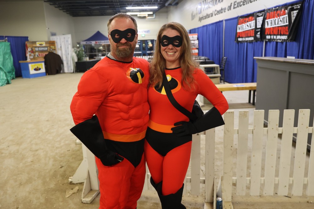Daniel (left) and Lori Bessant rock their Incredibles costumes during Party in the Dirt at Manitoba Ag Ex. (Abiola Odutola/The Brandon Sun)
