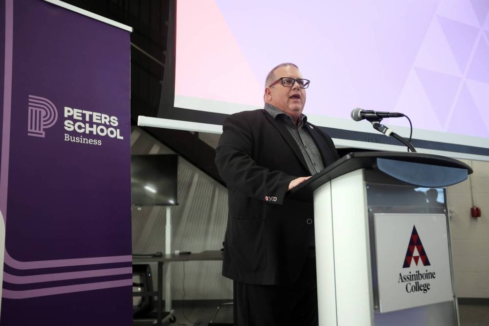Assiniboine College president and CEO Mark Frison speaks during the opening of the Creative CoLab on Thursday. (Tim Smith/The Brandon Sun)