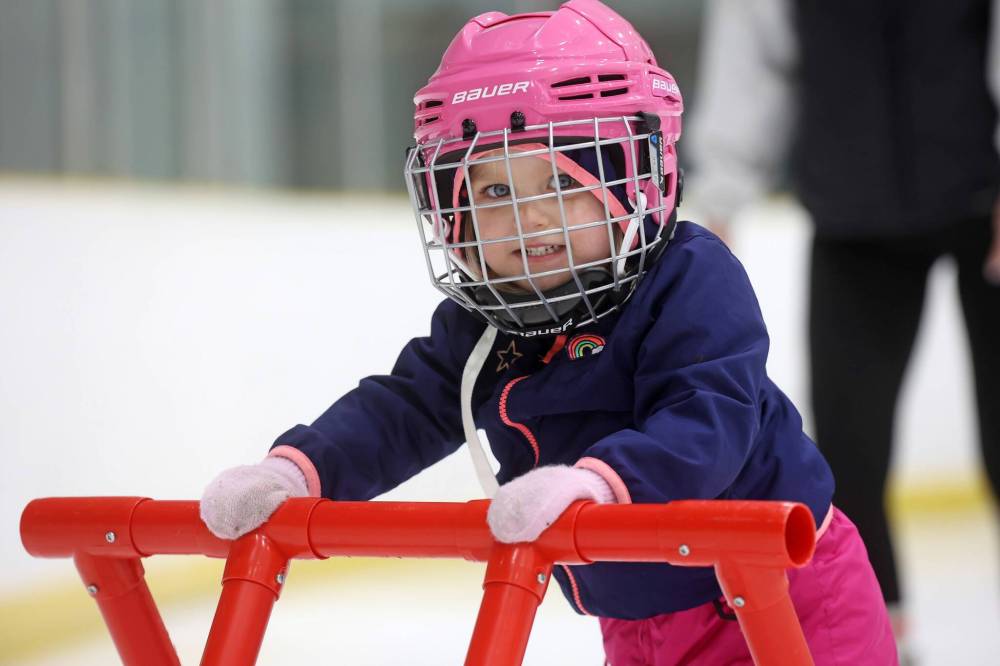 Three-year-old Emma Grabauskas of Rivers ice skates during the Rivers and District Chamber of Commerce Holiday Celebration at the Riverdale Community Centre on Friday afternoon. The celebration also included kids’ activities and games, photos with Santa, and snacks. The community also held their annual Santa Parade in the evening. (Tim Smith/The Brandon Sun)