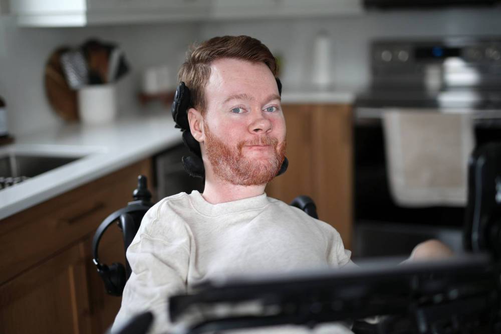 Bray, 30, uses his thumb to drive his wheelchair and work as a data consultant for the Louis Riel School Division on his computer and phone.