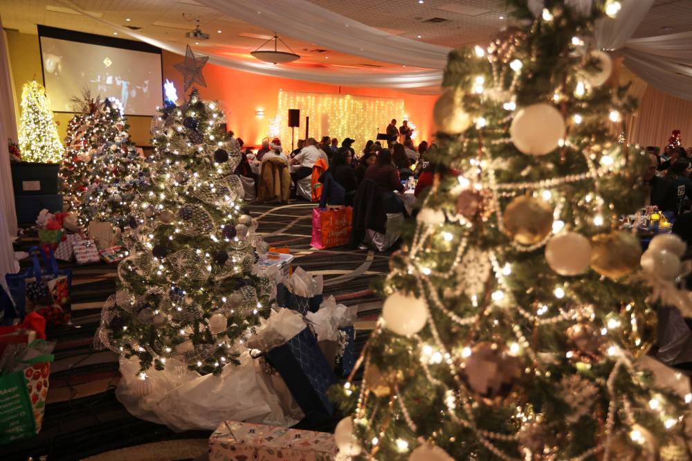 Decorated Christmas trees light up the Victoria Inn during the United Way West Central Manitoba 30th Annual Holiday Tree Auction on Thursday evening. Twelve teams raced to decorate their trees during the event, and then the trees were auctioned off. Proceeds from the event and the auction go towards the United Way’s youth programs including Tools for School, Coats for Kids, FEYA (Financially Empowering Young Adults) and the Summer of Service program. The decorated trees and gifts will all be donated to area families in need.