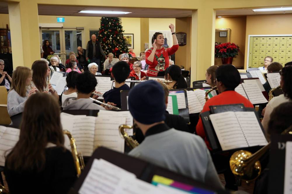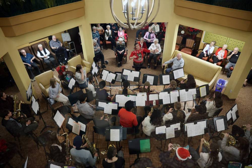 Students with the Vincent Massey High School Wind Ensemble perform Christmas classics for residents at Riverheights Terrace on Wednesday, December 17th.