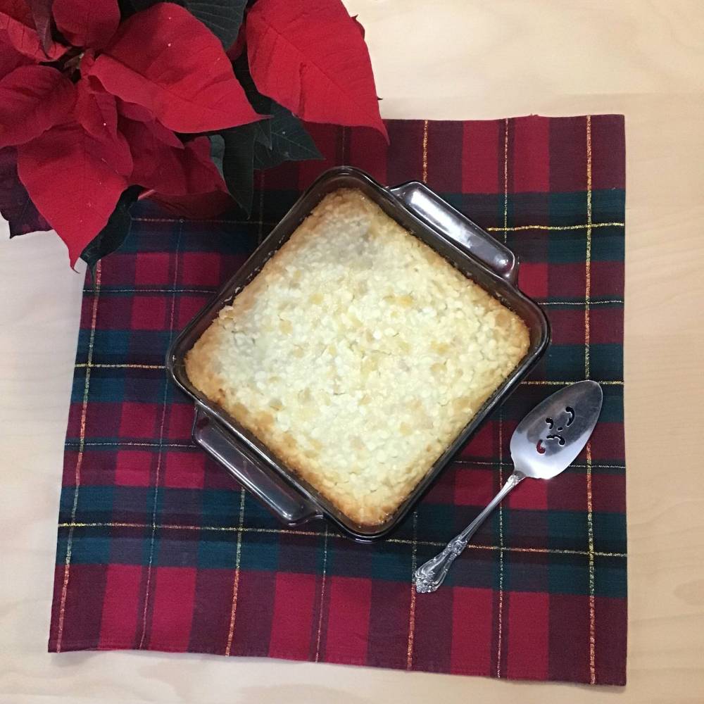 The recipe below, for pineapple cheesecake, is a delicious “welcome in for a cup of coffee” or a not-too-sweet dessert. Made with dry curd cottage cheese — an ingredient which would have been a long time rural kitchen staple for any small holding with a cow or two — it is a simple dish to make.