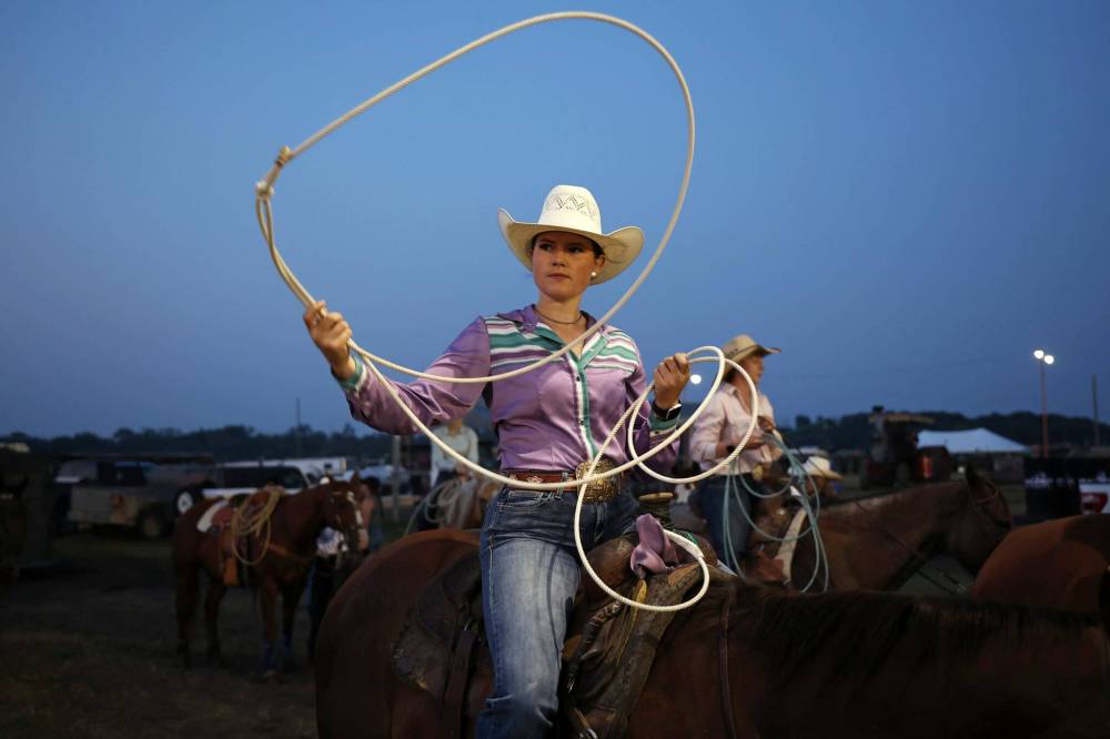 Madelyn Taylor gets ready for her breakaway roping run at the opening go round of the Manitoba Threshermen’s Reunion & Stampede rodeo at Austin in July. (Tim Smith/The Brandon Sun)