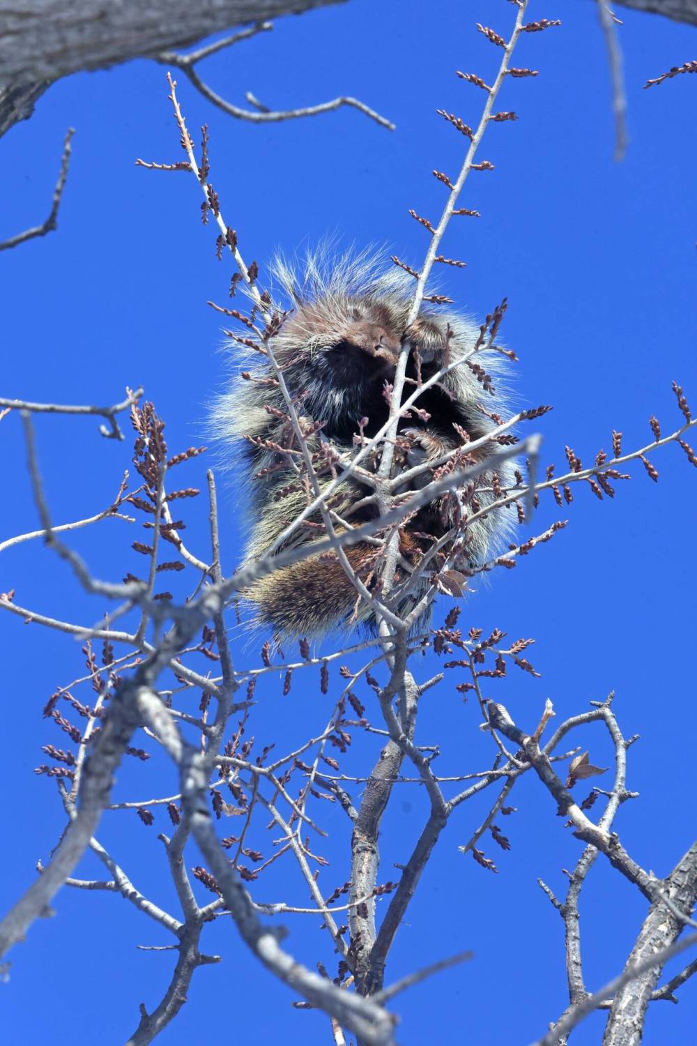 The porcupine in the tree came about as a bit of luck — driving down Grand Valley Road on a cold day in January after an unsatisfactory afternoon searching for subject matter, only to see a ball of spikes holding fast to a branch.