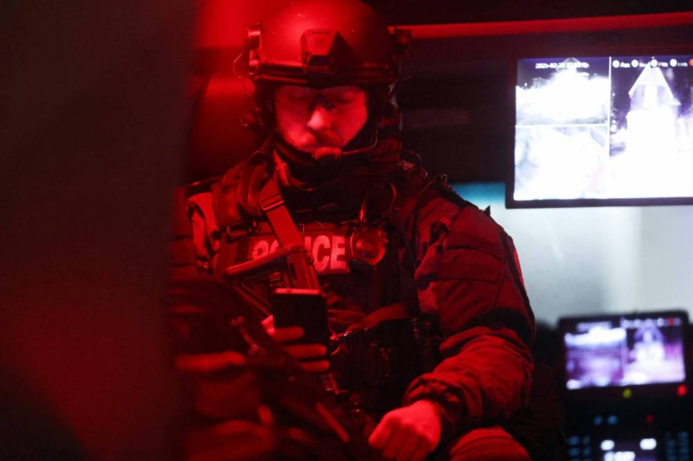 In another example, I managed to snap a photo of an on-duty officer with the Brandon police while driving downtown in Brandon one evening. Amid the flashing lights of police vehicles I saw the Brandon Police Service armoured rescue vehicle parked outside a home, with its back door open and an officer checking something on his phone following a police operation.