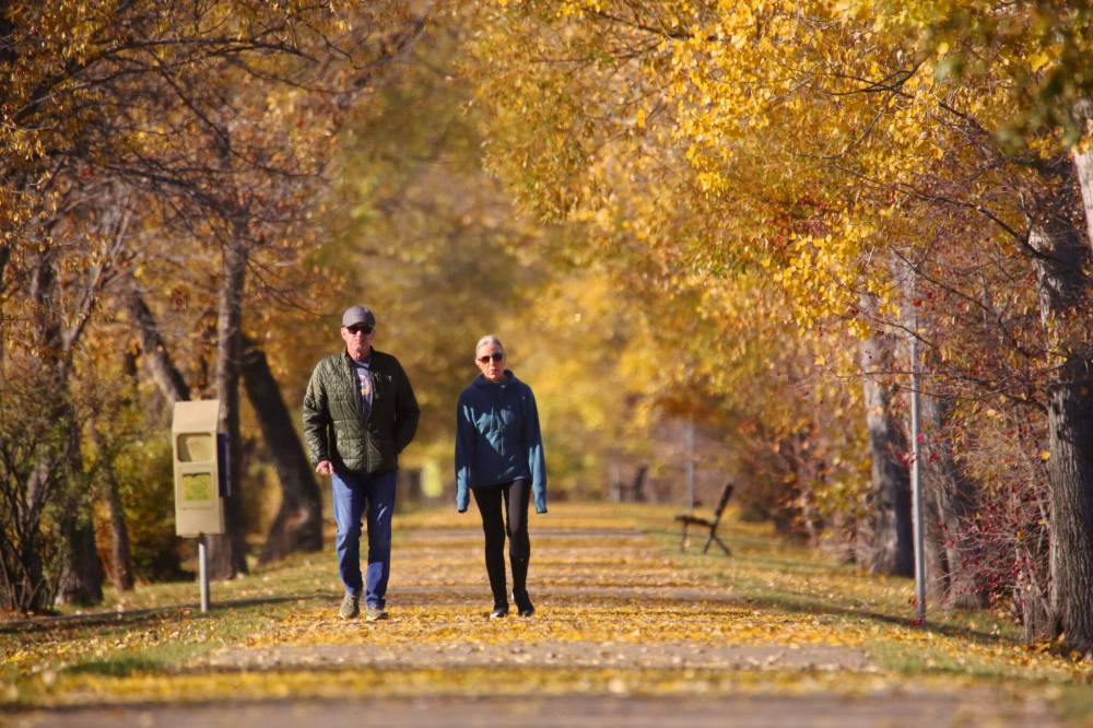 Patience can be a virtue too. I waited for at least 10 minutes for the couple walking down the sidewalk under the autumn leaves to get close enough.