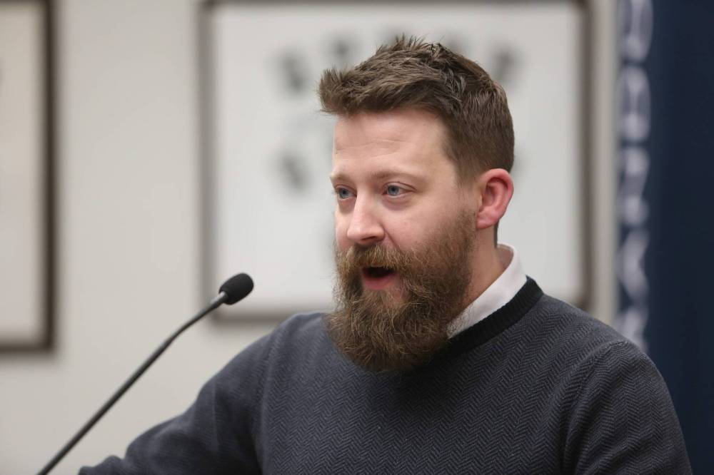 Finance director Troy Tripp presents the city's 2026 budget overview at Monday's council meeting. (Alex Lambert/The Brandon Sun)