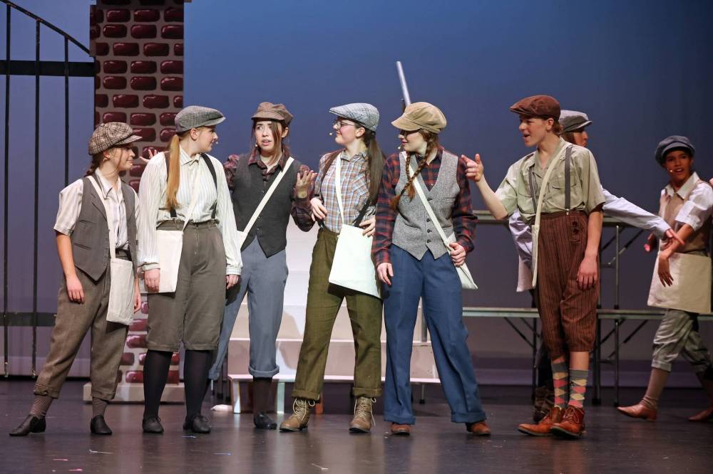 Cast members of “Newsies Jr.” give off a definite 1899 vibe during Thursday’s dress rehearsal.