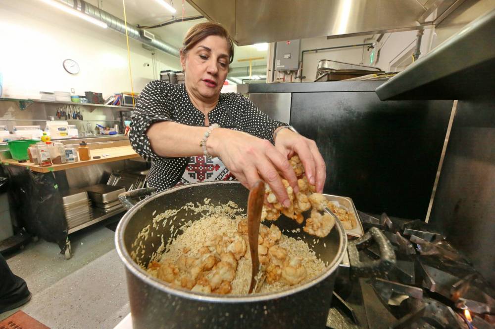 Harrison and her team were busy on Wednesday afternoon prepping beef shawarma and makloubeh — a kind of rice dish made with cauliflower, chicken and a rich blend of spices that filled her work kitchen on 13th Street.