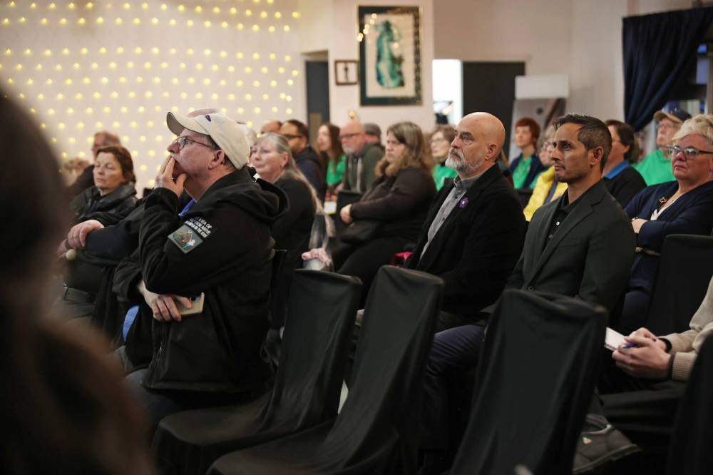 Westman residents listen as Sala speaks during Friday’s pre-budget consultation.