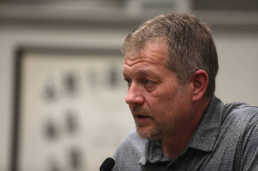 Corey Wagner, the city’s solid waste manager, speaks at Tuesday’s council meeting. Wagner said staff “consistently observed high levels of contamination” in material dropped off at community depots. (Alex Lambert/The Brandon Sun)