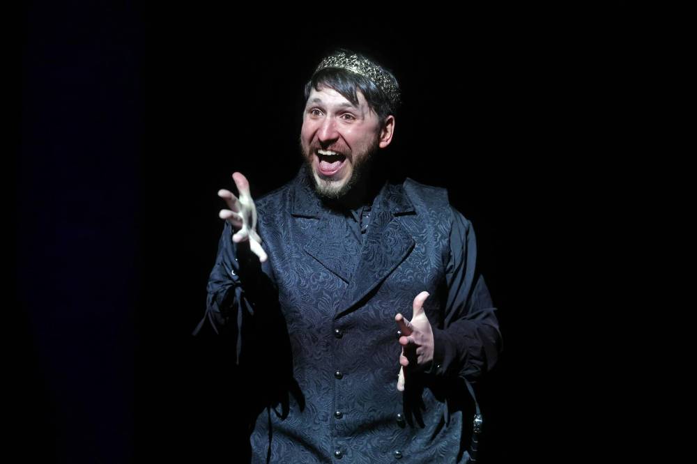 Cam Tataryn portrays Hamlet during the dress rehearsal for Mecca Productions’ presentation of William Shakespeare’s “Hamlet” at the Western Manitoba Centennial Auditorium on Wednesday evening. (Tim Smith/The Brandon Sun)