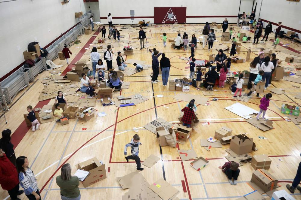 Kids and adults take part in the Cardboard Box Challenge. Participants were encouraged to use creativity, problem-solving and engineering skills and provided to tools to create anything they liked from cardboard. (Tim Smith/The Brandon Sun)