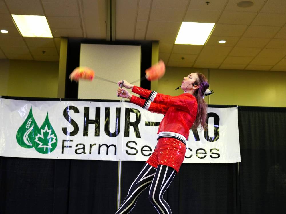 Tara Spinja Stratton performs during the first day of the winter fair at the Keystone Centre on Monday. (Weichen Zhang/The Brandon Sun)