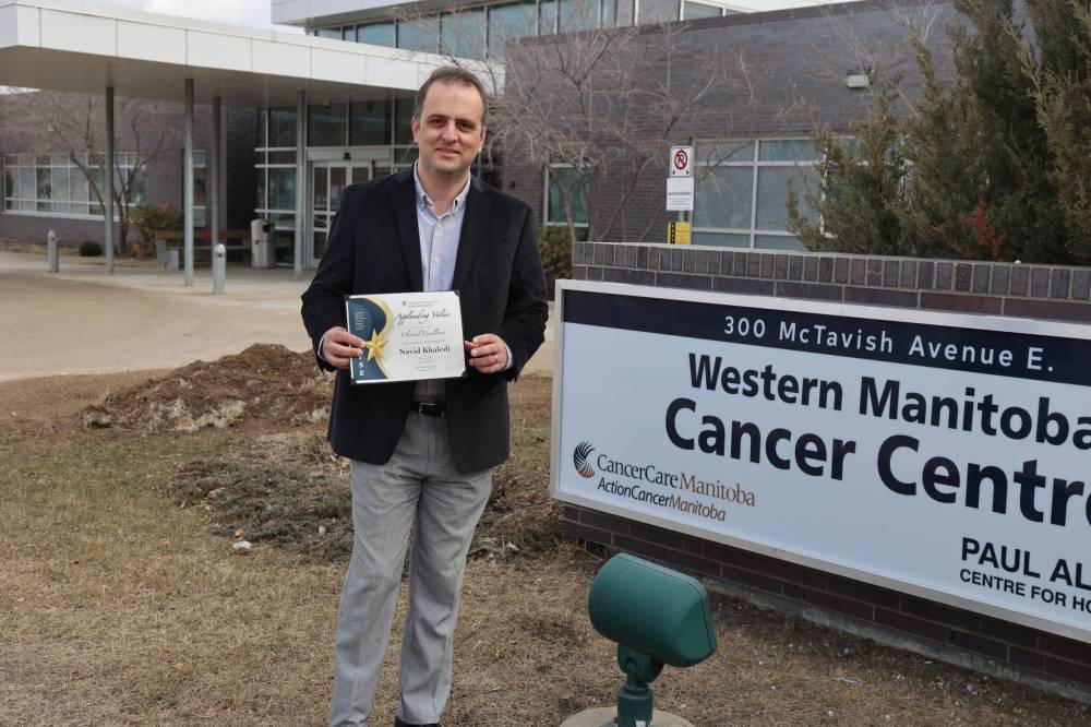 Navid Khaledi, a medical physicist and radiation safety officer with CancerCare Manitoba, is the recipient of the Applauding Values-Clinical Excellence Award, an honour that highlights contributions to patient care across the province.