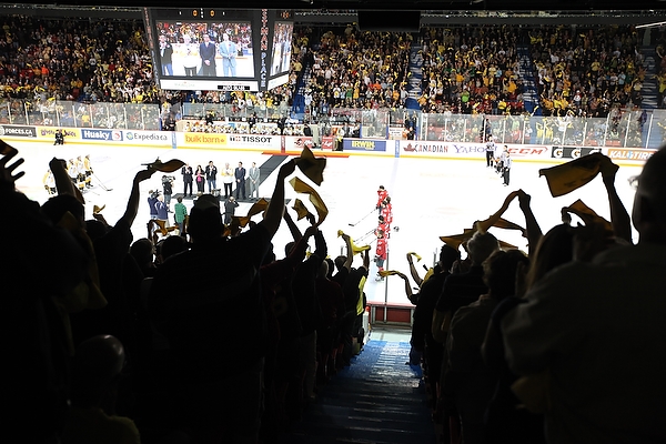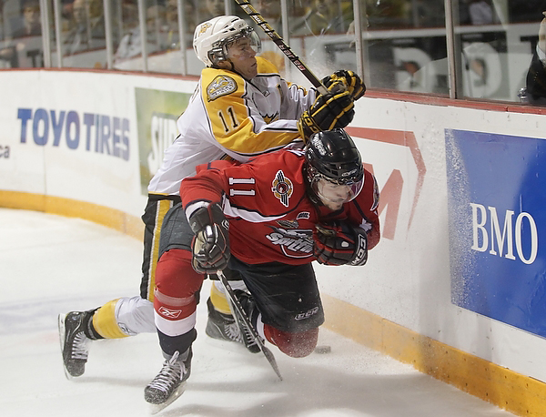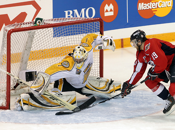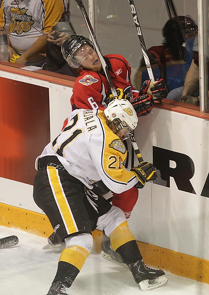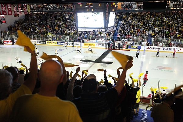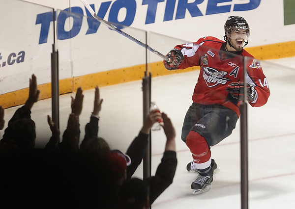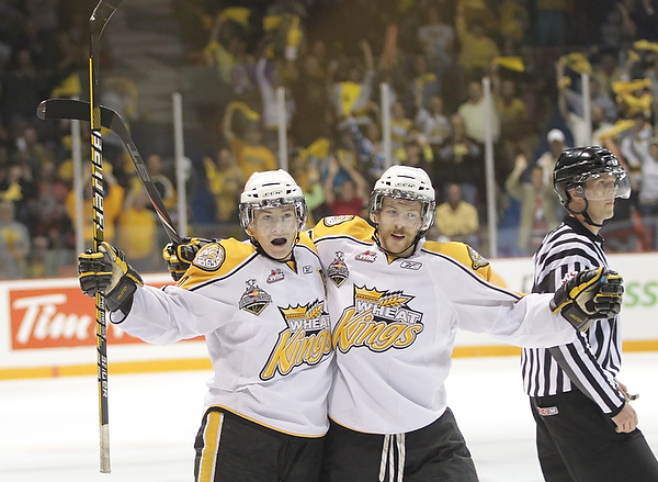 Wheat Kings Fans cheer at the start of the 2010 Mastercard Memorial Cup championship at Westman Place on Sunday, May 23, 2010. (Tim Smith/Brandon Sun)Wheat Kings Fans cheer at the start of the 2010 Mastercard Memorial Cup championship at Westman Place on Sunday, May 23, 2010. (Tim Smith/Brandon Sun)Zack Kassian #19 of the Windsor Spitfires tries to get the puck around goalie Jacob De Serres #1 of the Brandon Wheat Kings during the first period of the Mastercard Memorial Cup Championship at Westman Place in Brandon on Sunday, May 23, 2010. (Tim Smith/Brandon Sun)Adam Henrique #14 of the Windsor Spitfires celebrates after scoring during the first period of the Mastercard Memorial Cup Championship against the Brandon Wheat Kings at Westman Place in Brandon on Sunday, May 23, 2010. (Tim Smith/Brandon Sun)Taylor Hall #4 of the Windsor Spitfires and Travis Hamonic #12 of the Brandon Wheat Kings collide during the first period of the Mastercard Memorial Cup Championship at Westman Place in Brandon on Sunday, May 23, 2010. (Tim Smith/Brandon Sun)Toni Rajala #21 of the Brandon Wheat Kings runs Ryan Ellis #6 of the Windsor Spitfires into the boards during the first period of the Mastercard Memorial Cup Championship at Westman Place in Brandon on Sunday, May 23, 2010. (Tim Smith/Brandon Sun)Tim Smith/Brandon Sun