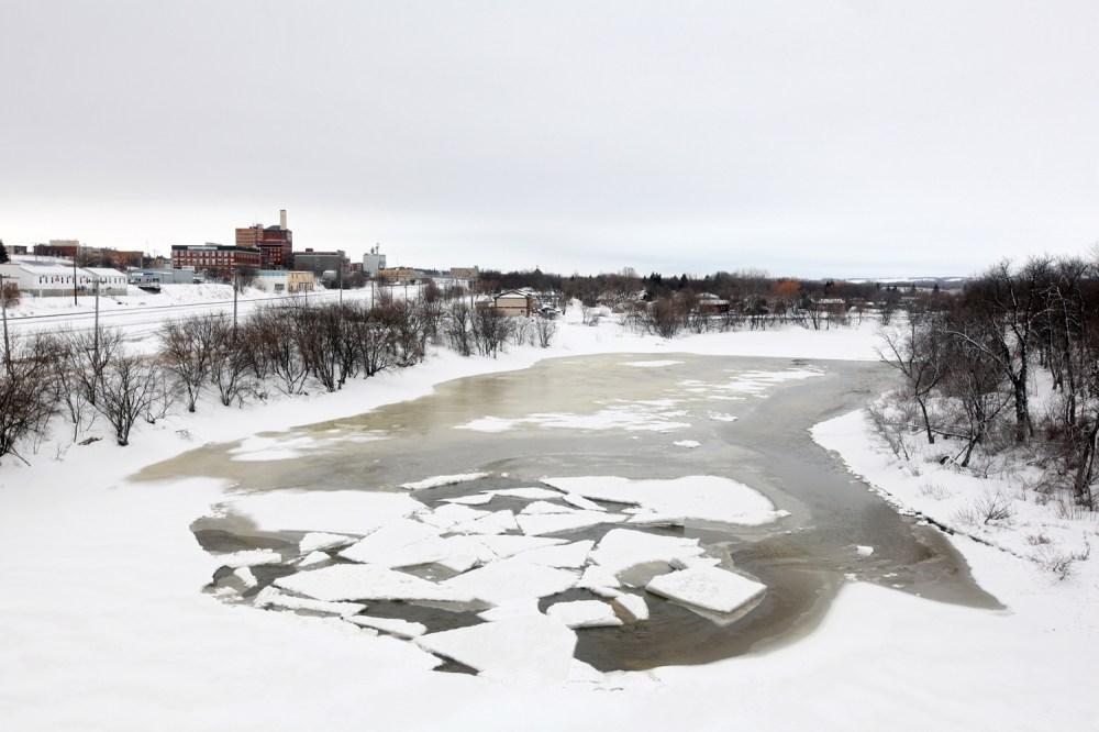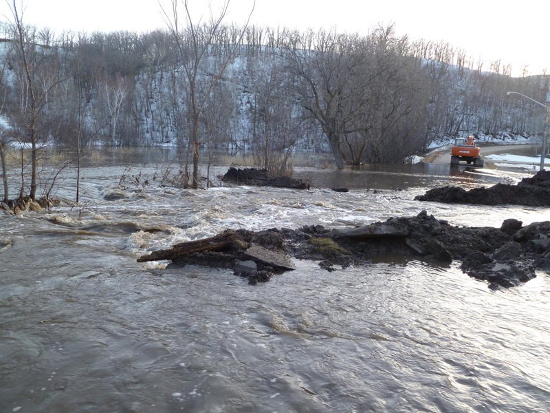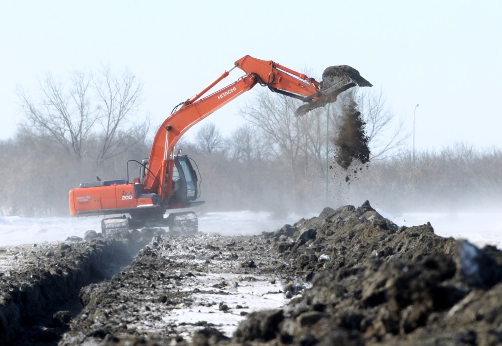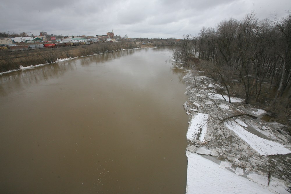 Work on the dike on the north side of the Assiniboine River at the Riverbank Discovery Centre was being done on March 1.Ice is shown breaking up on the Assiniboine River in Brandon a number of years ago. The province has issued a warning about thin ice as this year's spring thaw is underway. (File)Tim Smith/Brandon Sun