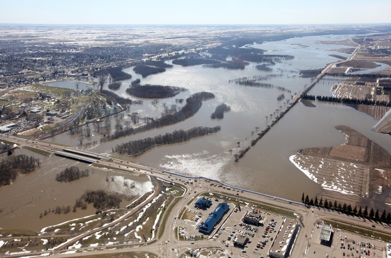 The swollen Assiniboine River envelops much of the Grand Valley leading towards 18th Street in this view from the air taken May 2.Tim Smith/Brandon Sun