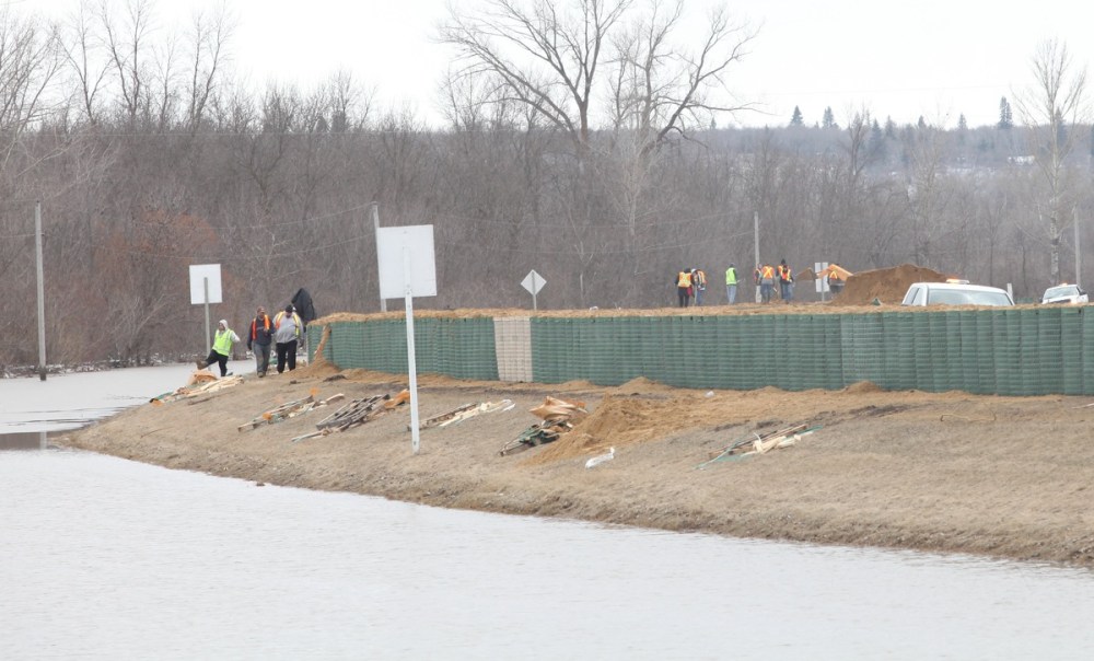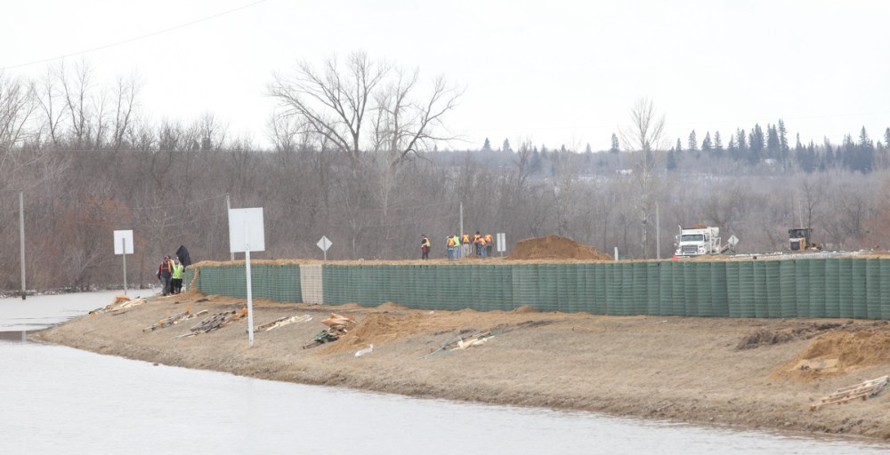 A Hesco bastion lines Highway 5 just north of the Seton bridge over the Assiniboine river in Spruce Woods Provincial Park as workers battle the floodwaters of the swollen Assinibone on Monday. Highway 5 is closed between Glenboro and Carberry due to the work being done to deal with the flooding.Tim Smith/Brandon Sun