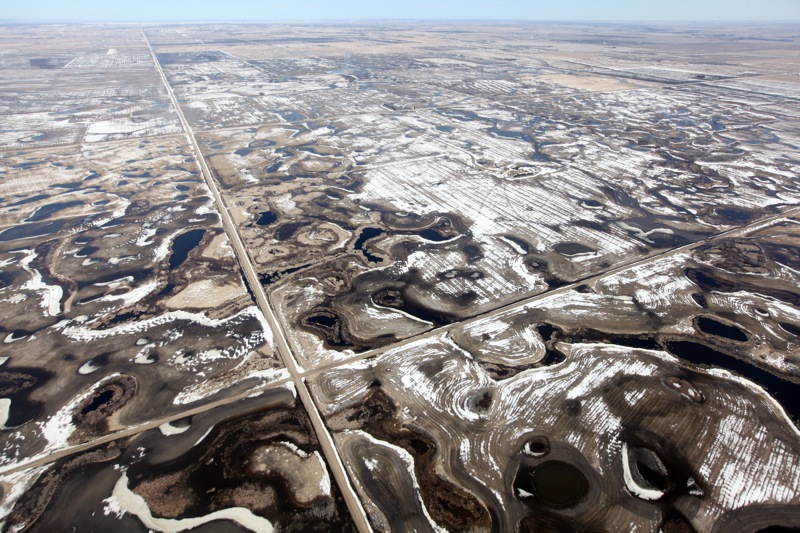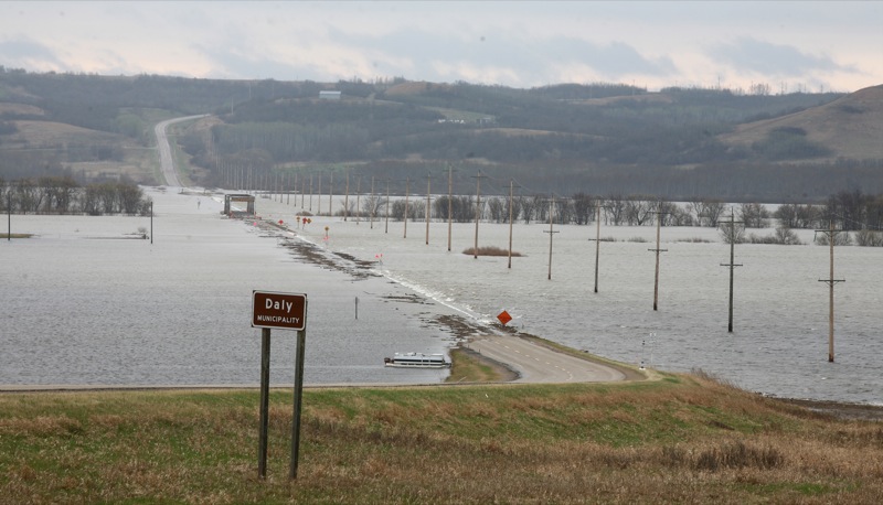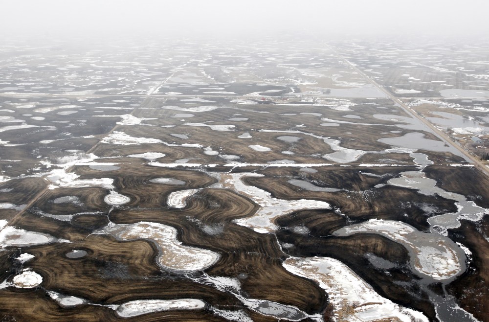 Pockets of water dot the landscape north of Souris on Monday.Bruce Bumstead/Brandon Sun