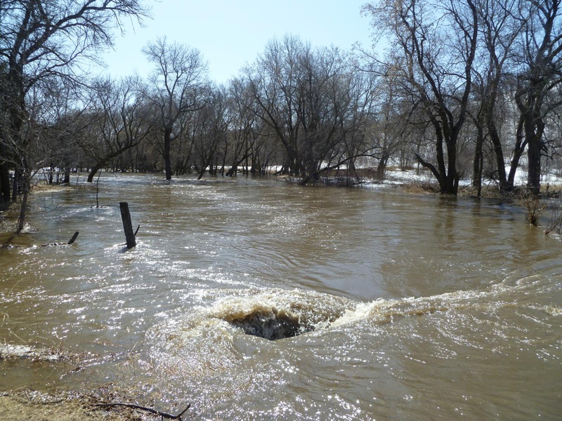 Water levels on the Assiniboine River has forced the river to spill its banks following an ice jam downstream near Spruce Woods Provincial Park over the weekend.Bruce Bumstead/Brandon Sun