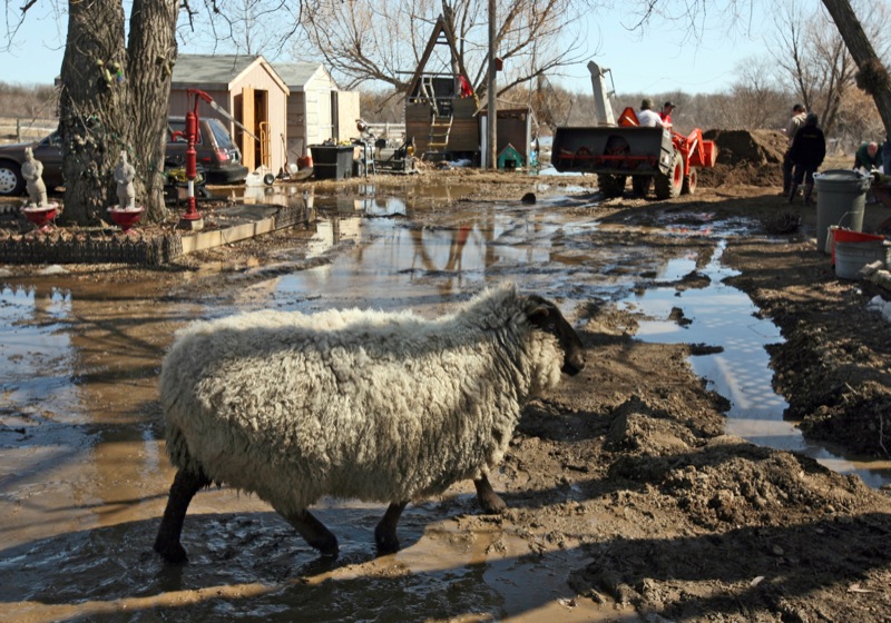 A sheep scampers across a muddy lane at a home in the Rural Municipality of Cornwallis struggling against rising river levels, Tuesday afternoon.Colin Corneau/Brandon Sun