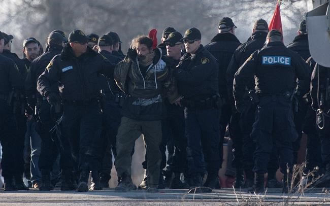 A similar operation from the Ontario Provincial Police on Monday resulted in the arrest of 10 protesters who had been occupying a stretch of track in Tyendinaga Mohawk Territory near Belleville, Ont. They, too, were released with conditions.