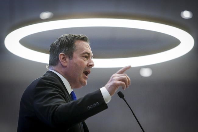 Alberta Premier Jason Kenney delivers remarks at a conference in Calgary on February 26, 2020. THE CANADIAN PRESS/Jeff McIntosh
