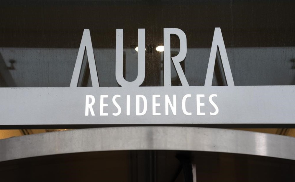 The sign on the Aura condominium building is shown in Toronto on Tuesday, Jan. 17, 2023. A unit in the building was recently sold without the owner's knowledge. THE CANADIAN PRESS/Frank Gunn