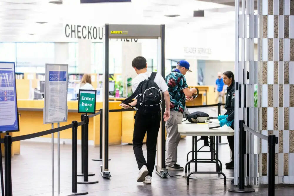 The city proposal says the metal detector and screening process should stay up at the downtown branch for now, prior to a plan to redesign the facility’s lobby. The city will soon seek a consultant to conduct a feasibility study.