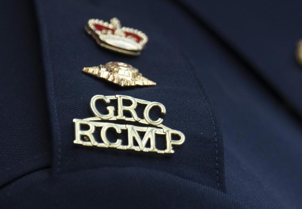 The RCMP logo is seen on the shoulder of a superintendent during a news conference, Saturday, June 24, 2023 in St. John’s, Newfoundland. RCMP in Alberta say two 14-year-old boys have died in a single-vehicle crash. THE CANADIAN PRESS/Adrian Wyld