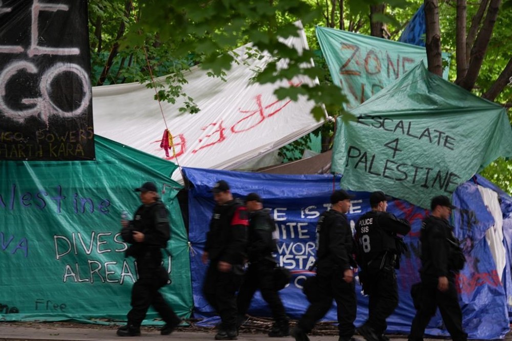 City police say protesters gathered at around 8 p.m. at Place Jean-Riopelle and marched roughly one kilometre north toward McGill University’s downtown campus where a separate encampment has been in place since late April. Campus protesters have been demanding the university cut ties with Israel as its war with Hamas continues to rage.
