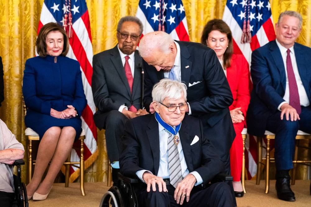President Joe Biden awarded Phil Donahue the Presidential Medal of Freedom in May. (Demetrius Freeman/The Washington Post)