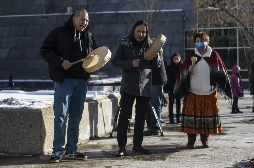 Alberta's top court has dismissed the Crown's appeal of the sentence handed to an Ontario truck driver convicted in the 2011 death of Cindy Gladue. Drummers take part in a rally for Gladue outside court in Edmonton on Feb. 18, 2021. THE CANADIAN PRESS/Jason Franson