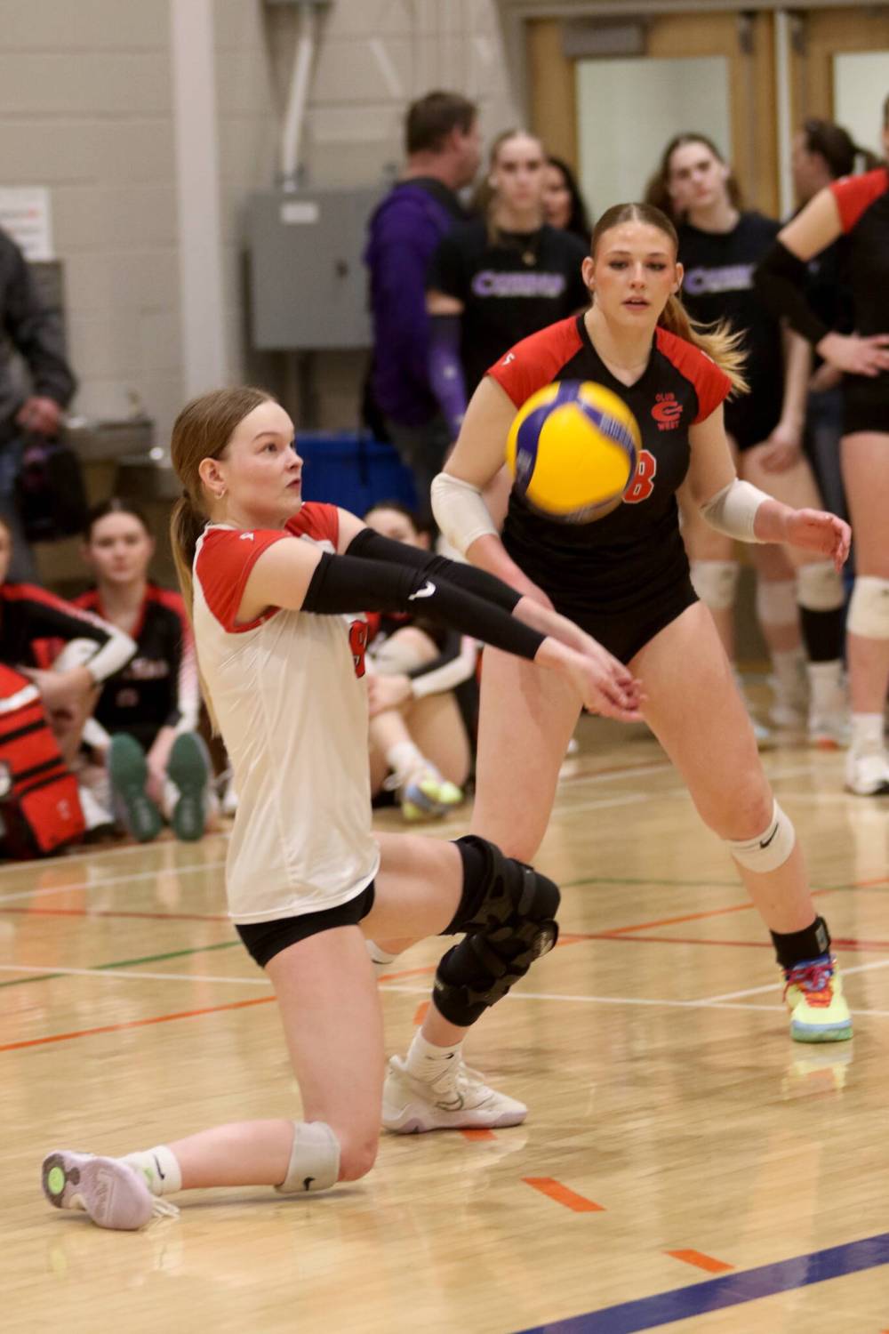 Club West’s Emersyn Geekie-Towle digs a ball during the BVC 18U girls’ tournament at Henry Champ Gymnasium on Sunday. (Thomas Friesen/The Brandon Sun)