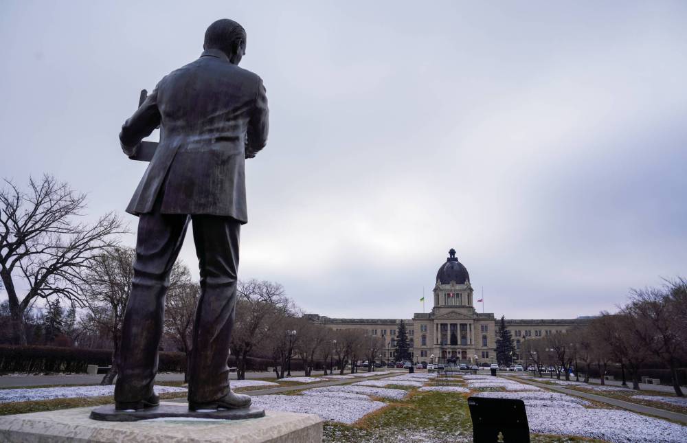 The Saskatchewan Legislative Building in Regina is shown on Tuesday, when the government announced the projected year-end deficit is expected to be $427 million. (The Canadian Press)