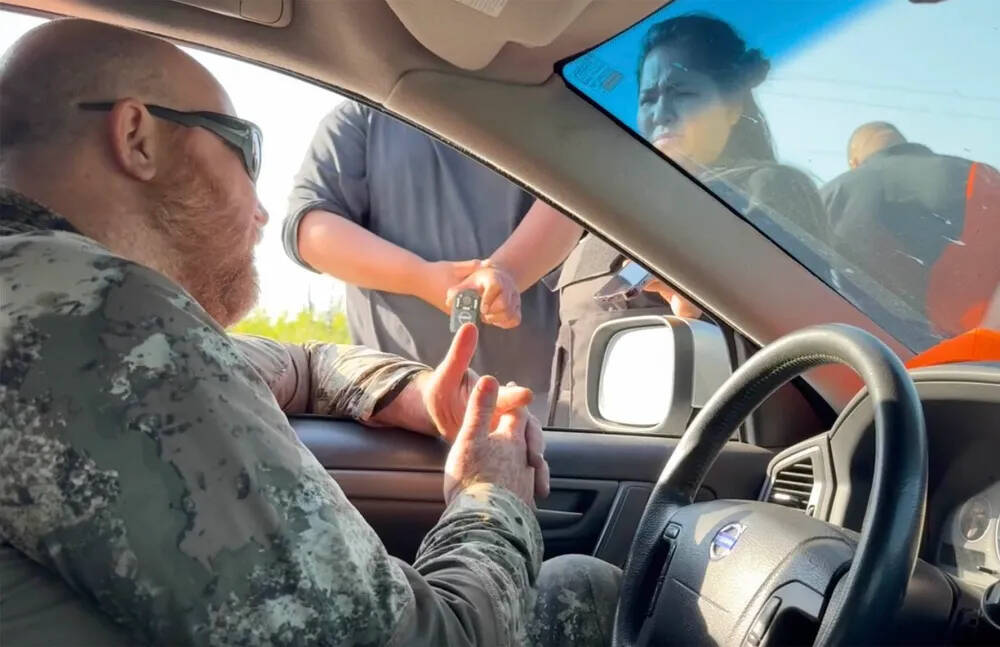 A video shows two hunters denied entry at the Bloodvein blockade on Sept. 27. The interaction is referred to in documents filed in court as part of a court action by the Manitoba Wildlife Federation. (Supplied)