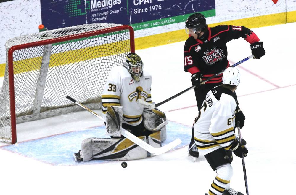 The Wheat Kings had nearly tied the game early in the power play when a shot by Brady Turko hit the crossbar and bounced straight down but somehow stayed out.