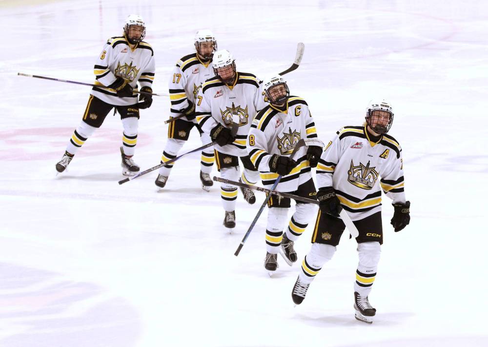 On Tuesday in Game 3 at Hartney Arena, after the Hawks opened the scoring early in the first period, the Wildcats led the game 5-1 just 15 minutes later on goals by Hadley Robertson, Ivy Perkin, Kasia Baranyk, Ivy Fry and Rachel Lyver. Lucy Waldner, Ava Snyder and Perkin, with her second, also scored in an 8-3 rout.
